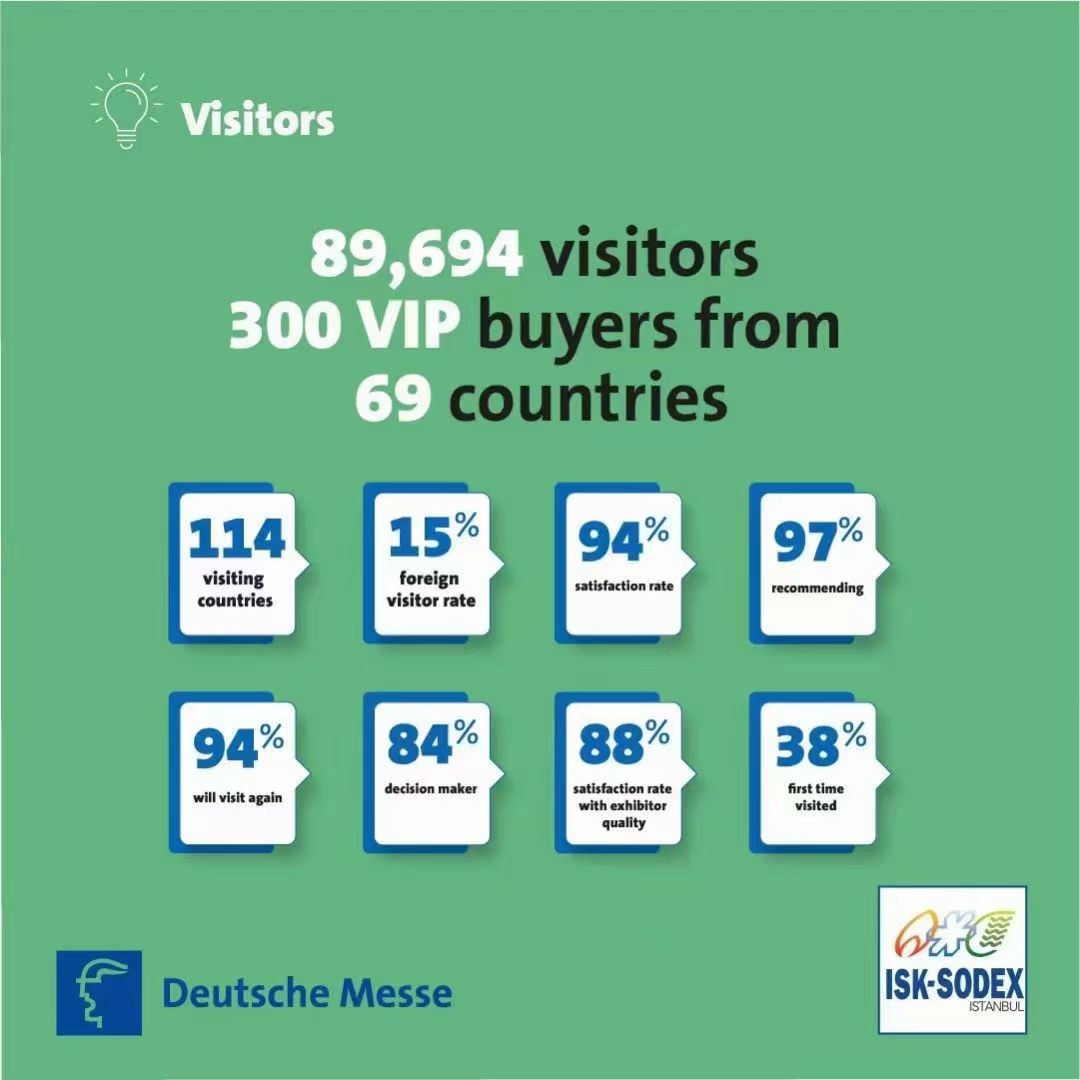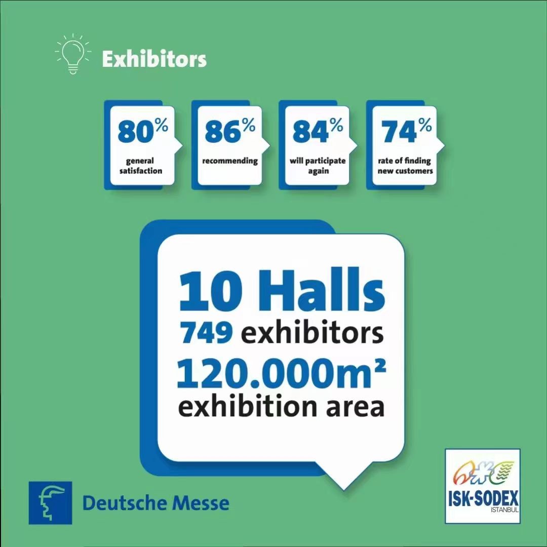 在ISK-SODEX的舞台上,上届展会总面积达到了90000平方米,参展企业如云,共计800家。这些企业来自世界各地,包括中国、新加坡、意大利、澳大利亚、俄罗斯、迪拜、巴西、泰国、马来西亚、南非、肯尼亚、越南、柬埔寨等。其中知名的中国参展企业展会有山东大明、格瑞德集团、浪奇泵业、奥美森、澳蓝、勃勃机械、诺布尔等等,更是吸引了50000多名专业观众,他们在这里寻求商机,探讨合作。